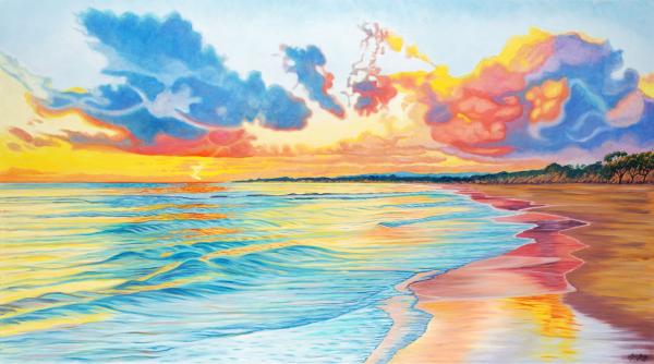 This painting of a coastal sunset overlooking Seacliff Beach in Aptos was commissioned by a couple who live in that area and see a similar